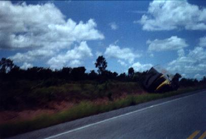 Wir fuhren noch bis 21:30 Uhr weiter und blieben dann in Cristalina übernacht, nachdem wir lange nach einer Bleibe gesucht hatten und sie schließlich in Form einer kleinen Pension auch fanden. 1210 km waren wir heute gefahren, das war die höchste Tagesleistung. Von Cristalina aus nach Guaraí sind es 1210 km, über Anápolis sind es 1341 km. Das spart 131 km und die Straße ist gut, der Verkehr gering, die Landschaft zwar nicht überragend, aber da hat man in Brasilien sowieso nicht die große Auswahl. LKW gibt es auch hier, aber die meisten liegen meistens links oder rechts der Straße im Graben, so daß sie nicht weiter stören.