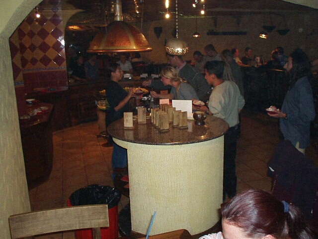 Wir suchten uns ein feines Lokal, um zu dinieren. Im Lonely-Planet fanden wir eines, das scheinbar gerne von Touristen aufgesucht wird. An den Namen erinnere ich mich nicht mehr. Es hatte ein Parkhaus nebenan, daher kam auch nichts anderes in Frage. Sofort nachdem wir es betraten, stellte ich fest, daß das Lokal von Touristen regelrecht heimgesucht wird. Wir ließen uns nieder. Es machte einen dezenten Eindruck. Zwar etwas teuer für Landesverhältnisse, aber um Cat zu verabschieden war es durchaus angemessen. Ein sehr gediegenes Lokal. Man darf sich nicht dadurch irritieren lassen, daß man kaum Spanisch hört, sondern zumeist Deutsch oder Englisch. Das Essen - ausgesuchte Delikatessen - konnte man sich auf einem Teller selbst zusammenstellen und anschließend konnte man es nach Geschmack braten lassen. Exquisit.
