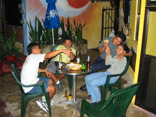 Es kam auch noch Pedros Bruder und wir saßen dann erst im Laden, dann vor dem Hotel und tranken Bier. Irgendeiner von den beiden hatte auch noch eine relativ hübsche Mexikanerin herbeigezaubert. Ich sage relativ, weil ich während der ganzen Zeit in Playa nur eine einzige richtig hübsche Mexikanerin gesehen habe, und das war Anna aus Zimmer Eins.