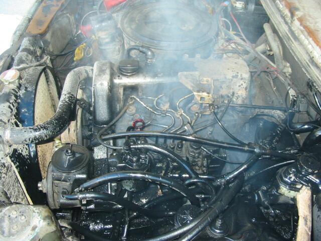 des Daimler hat durch die geschlossene Haube hindurch Ölspritzer abbekommen,