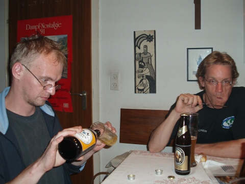 Auch er wartete zwei Straßenbahnen und keine Almut kam. Also kehrte er wieder zurück. Als wir Stunden später daheim ankamen, lag sie im Auto und schlief. Ein einfaches Handy hätte all das verhindert. Es hätte verhindert, daß drei Leute jeweils über eine halbe Stunde in der Kälte warten, sie hätte nicht vier Euro für eine sinnlose Hin- und Rückfahrt gezahlt und einen Plan hätte man auch machen können. Natürlich auch kein Anruf mit der Message: "Ich bin wieder daheim, weil ich zweimal über den Moritzplatz gelaufen bin und keiner da war". Das muß in den fünf Minuten gewesen sein, als wir uns mit Michl abgelöst hatten, also die Zeit, die es braucht, zweimal dreihundert Meter zu Fuß zurückzulegen. Da muß man einfach härtere Erziehungsmethoden aufziehen. Das hat ja so keinen Sinn. Man darf sich schließlich nicht der Technik aus Prinzip verschließen. Das habe ich auch früher gemacht, doch da war ich 15 Jahre alt. Nun sind wir doppelt so alt und sollten es besser wissen.