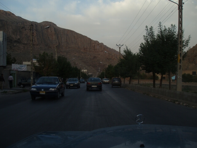 Über die Zeitumstellung waren wir uns nicht im klaren, konnten aber diesbezüglich nichts machen. Wir fuhren gemütlich durch Bazargan, den Grenzort. Es gab viele Speed-Bumps. Die Kennzeichen trugen auch die indischen Zahlen, oder die arabisch-indischen (so werden sie jedefalls unter Windows 2000 in der Zeichentabelle bezeichnet, "Extendet arabic-indic digit"). Alles sieht hier etwas gepflegter aus, als vor der Grenze in der Türkei. Als erstes mußten wir uns natürlich verfahren. Wir bogen rechts ab und es kam uns nach einer Weile verdächtig vor, daß die Straße immer enger wurde, der Verkehr immer dichter. Wir hielten an und fragten nach dem Weg nach Teheran. Man wies und genau in die entgegengesetzte Richtung. Wir wendeten und fuhren, wie uns geheißen. Plötzlich hielt neben uns ein Auto, und jemand begüßte uns. Sein Name war Dariusch. Er wollte mit uns einen Tee trinken. Ich erklärte ihm aber, daß wir eilig nach Teheran müßten, da wir auf einer Deadline waren. Er fragte, ob wir fragen hätten. Wir fragten erneut nach dem genauen Weg. Dann noch nach dem Weg zur nächsten Tankstelle. Er gab uns seine Telephonnummer, damit wir ihn anrufen könnten, falls wir etwas bräuchten, oder um doch noch der Einladung zum Tee nachzukommen auf dem Rückweg. Was uns in dem Moment nicht einfiel war es, nach der Uhrzeit zu fragen. Das fiel uns erst einige Kilometer weiter auf.