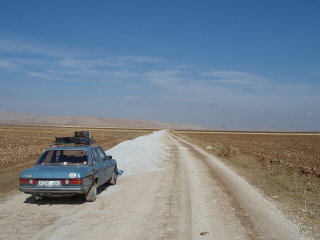 Gegen 15:00 Uhr bliesen wir zum Aufbruch. Es geht nach Ankara, mit einem kleinen Abstecher über den Tuz Gölü, oder Tuzsee, wie man auf Deutsch sagt, eventuell mit Übernachtung dort. Wir stiegen ins Auto ein und verließen Konya. Weit war es nicht, bis zum See, keine 150 km, aber wir mußten die Hauptstraße verlassen und auf eine kleinere abbiegen. Die Nebenstraße war zwar von rauhem Belag, aber wenig befahren und für türkische Verhältnisse sogar ganz gut. Schlaglöcher sahen wir nur sehr wenige und man konnte ohne große Lenkbewegungen ausweichen.