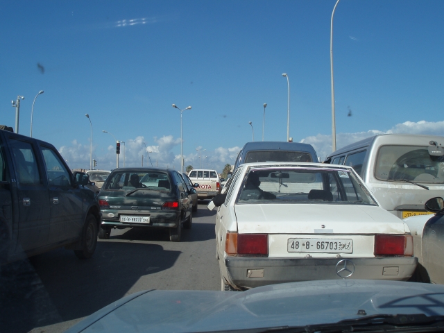 Wir gingen zurück zum Parkplatz, stiegen ein und fuhren zur Wohnung zurück. Erwartungsgemäß hatte der Tritt gegen die Räder nichts geholfen. Das Schaben ging allmählich in ein ganz häßliches Kratzen über. Auf dem Weg fiel mir ein Teilehändler ins Auge. Ich hielt davor, stieg aus und ging hinein. Der Typ hieß Hassan, war schon oft in Deutschland, lizensierter Ate-Reseller und konnte relativ gut Englisch und so kaufte ich dort nicht nur einen Satz Bremsklötze für zehn Dinar, also knapp sechs Euro. sondern ich unterhielt mich auch noch zwanzig Minuten über dies und jenes. Er gab mir seine Telephonnummer, für den Fall, daß wir irgendwas brauchen. Für Übersetzungen mußten wir ihn zwar nicht belästigen, aber man weiß ja nie. Ich speicherte seine Nummer. Dann fuhren wir in die Wohnung. Ich schlief noch aus, dann packten wir unser Zeug zusammen und beluden das Auto. Eigentlich wollten wir gleich los, aber ich entdeckte noch eine Pizzeria. Hilft nichts. Wenn ich Hunger hab, dann hab ich Hunger. Ich orderte einen Burger mit Pommes.